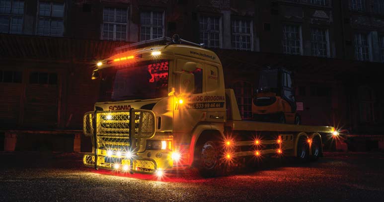 Dziś Scania P410 Lechmotu to nie tylko narzędzie pracy, ale wizytówka firmy. Doskonale utrzymana, widoczna dzięki belce ostrzegawczej i dodatkowemu oświetleniu – funkcjonalna, skuteczna i widowiskowa.