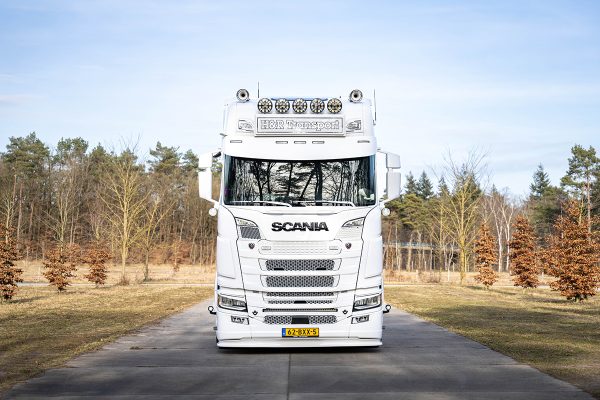 Nad projektem czuwało CDW (Central Delivery Workshop), które odpowiadało również za kompletną zabudowę. Scania otrzymała dokładnie taki charakter, jaki rodzina miała na myśli: dolny spoiler od Solar Guard, gładką płytę podestu oraz nowy tylny zderzak wyposażony w lampy Strands i oświetlenie robocze. Wokół pojazdu zamontowano liczne światła, a w grillu zintegrowano listwę LED. Całość dopełniają: osłona przeciwsłoneczna i charakterystyczne nakładki na reflektory.