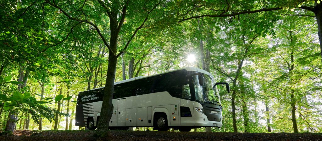 Nowy autobus Scania pozwala z dnia na dzień wdrożyć paliwa odnawialne w przewozach pasażerskich na duże odległości.