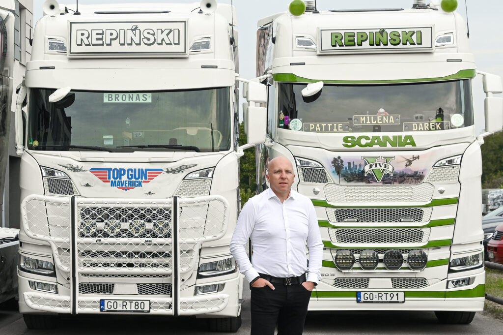 – Praktycznie każdy z naszych pojazdów przechodził mniejsze lub większe zmiany. Pierwsze ciężarówki posiadały jedynie drobne grafiki. Wraz z rozwojem firmy rozwijaliśmy również swoje modyfikacje. Oprócz wyglądu zewnętrznego zmieniamy wnętrza naszych samochodów, tak aby prezentowały się jak najlepiej oraz były komfortowe dla kierowców – opowiada Jarosław Repiński, właściciel Repiński Transport. – Kierowcy pracujący w naszej firmie podzielają moją pasję i zamiłowanie do ciężarówek. Sami wielokrotnie podsuwają pomysły i możliwości udoskonalenia designu. Bardzo dbają o powierzony im sprzęt.