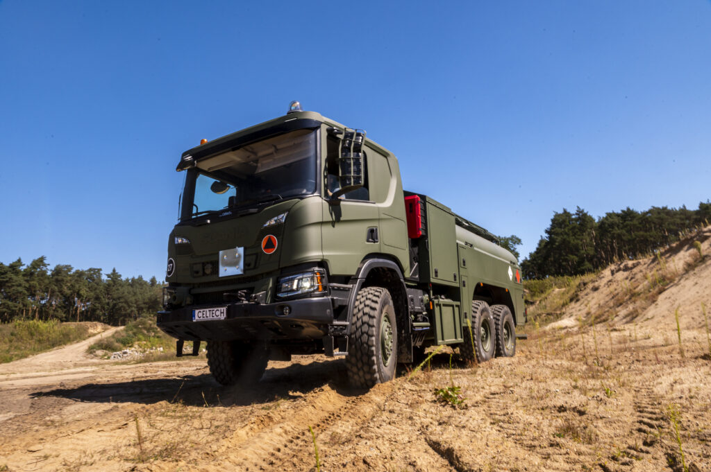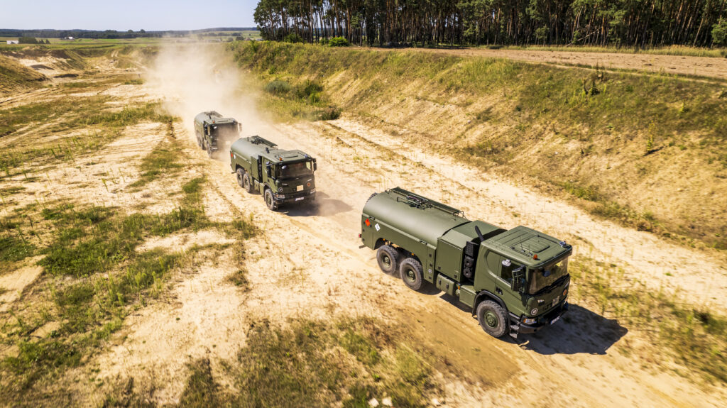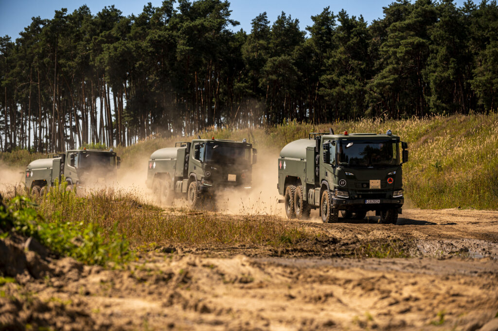 Scania zaopatruje Siły Zbrojne RP nie tylko w znakomite podwozia, ale również ciężkie ciągniki siodłowe z napędem wszystkich osi. Mogą one współpracować z ciężkimi naczepami niskopodwoziowymi do transportu sprzętu wojskowego, np. najnowszych czołgów K2 o masie 55 ton.